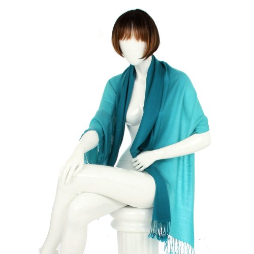 Silky 2 color gradation shawl with fringesSize 28 x 76 inch Weight 5.6 oz.../ Exquisite scarf - Sliky 2 tone Gradation paisley Pashmina Fashion scarf / shawl w/ fringe- teal blue / Shawl Scarf